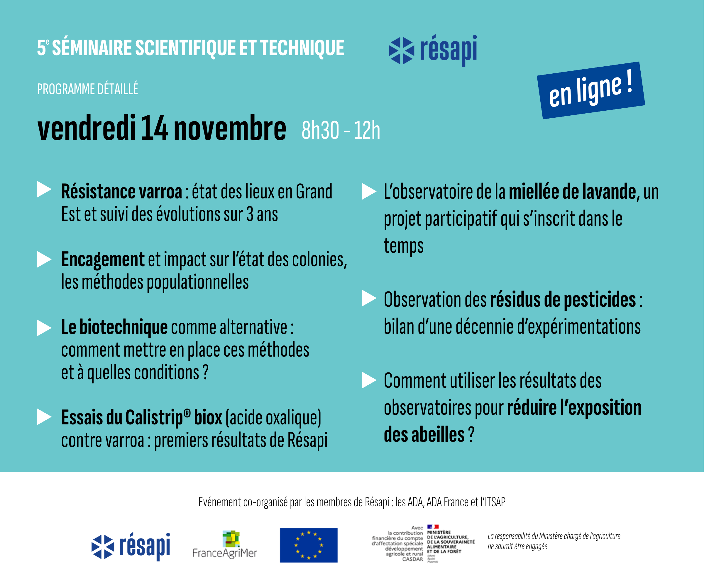 14/11 – Comment faire face à varroa & présentation des résultats des observatoires Résapi