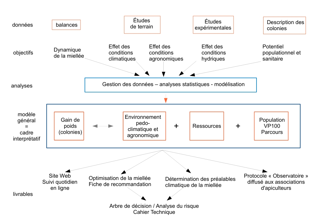 – produire des connaissances sur les pratiques concrètes à adopter pour contrôler et améliorer les facteurs de la miellée et s’adapter aux conditions météo